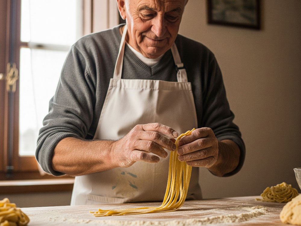 Vincenzo è il classico Nonno Toscano, che prepara le tagliatelle per i suoi nipotini.